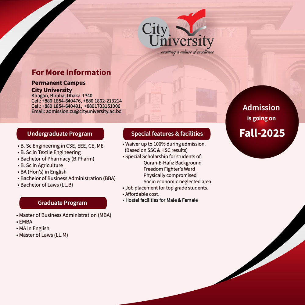 Why Choose City University? The City University Alumni Association is excited to announce the upcomming arrival of CU Alumni Connect. This is a new community platform for City Alumni. It is the only place online where you can find, and connect with, all 90,000 City Universities alumni. based society by providing proper knowledge to the learners of this institute. In the context of rapidly changing socio-economic conditions and the opportunities arising out of free market economy, our objectives is to provide prime and excellent technical, business and social education for our youths.